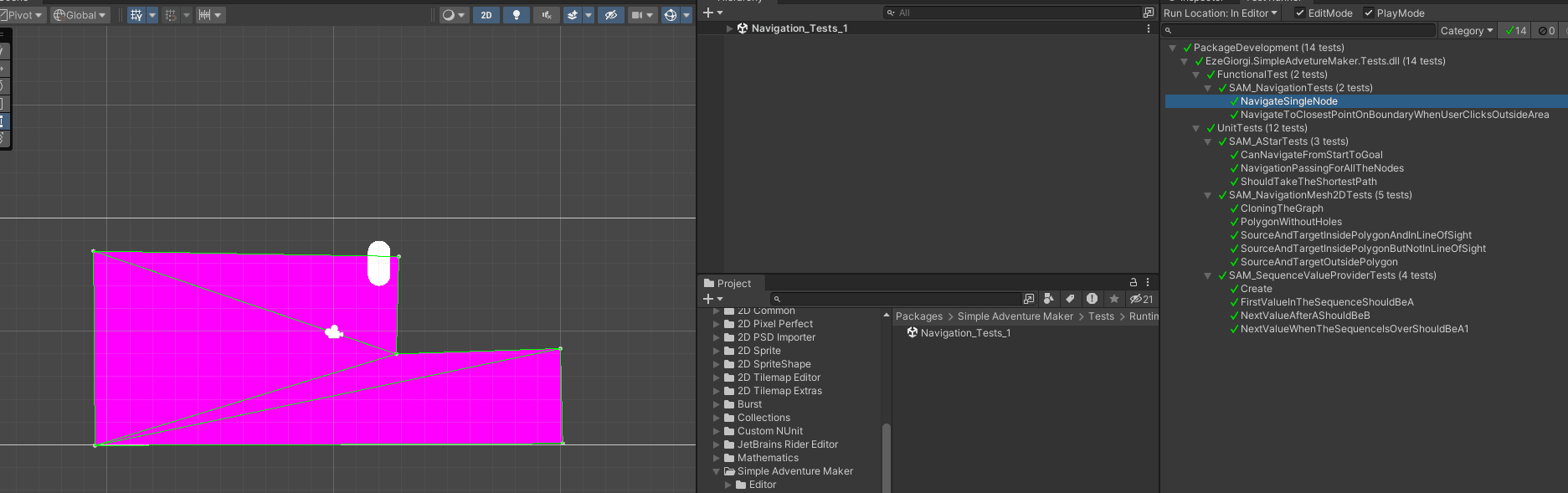 So far, the editor is relatively straightforward. You can define the walkable area using a PolygonCollider2D. At the moment, it allows you to create only one area and doesn't support defining holes within it